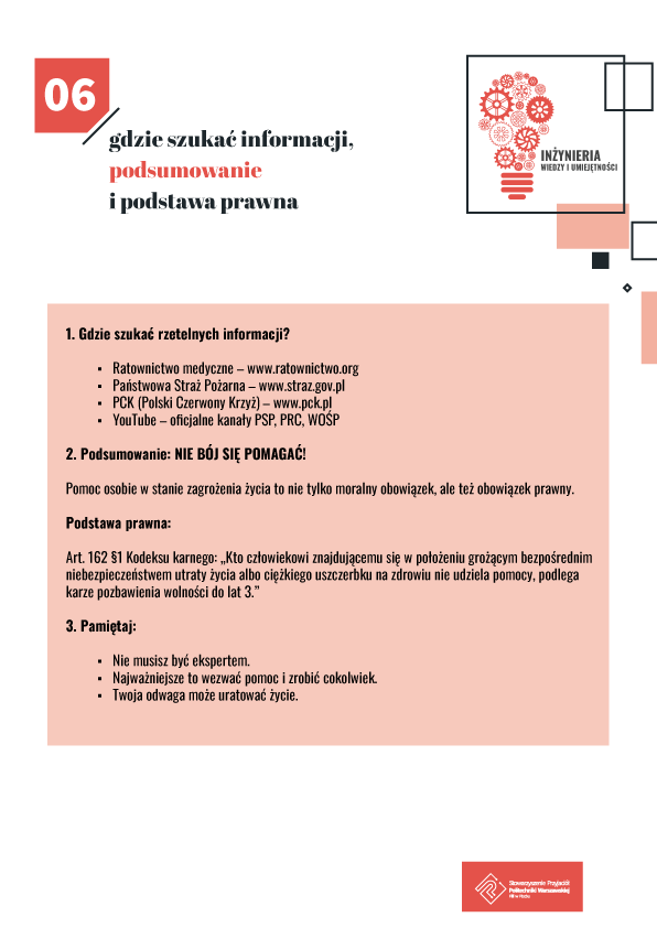 W ramach szkolenia z Pierwszej pomocy przedmedycznej powstał również informator, który w przejrzysty sposób pokazuje jak udzielać Pierwszej pomocy.